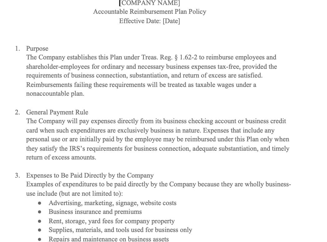 Transform your business’s reimbursement process with the Accountable Plan Bundle—the comprehensive, IRS-compliant solution that saves you time, ensures compliance, and empowers your financial strategy. Start building a more efficient and compliant business today!