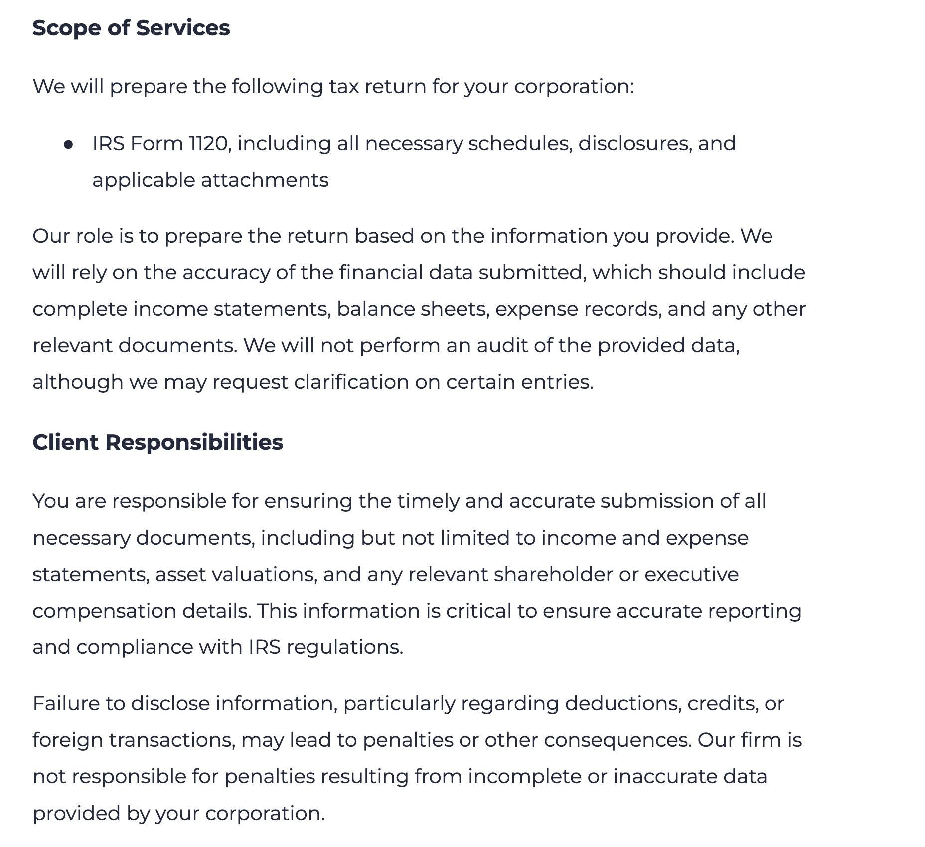 • Bookkeepers and tax preparers who need a clear client agreement for each engagement