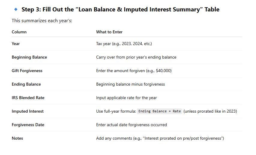 ✔️ Annual forgiveness tracker using IRS blended annual rates