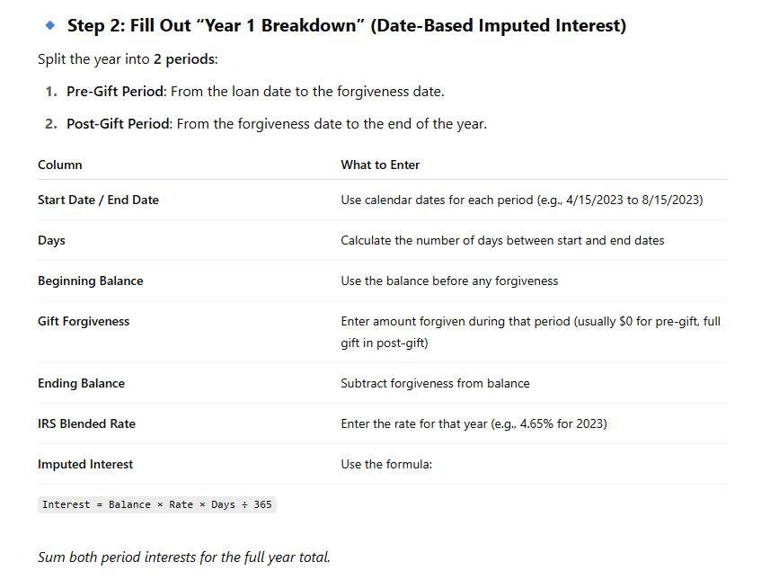 This easy-to-use spreadsheet includes built-in calculations, date-based interest formulas, and clearly labeled fields to guide you through each step. It’s perfect for estate and tax planning professionals, financial advisors, or families who want to document below-market interest loans properly for tax reporting.