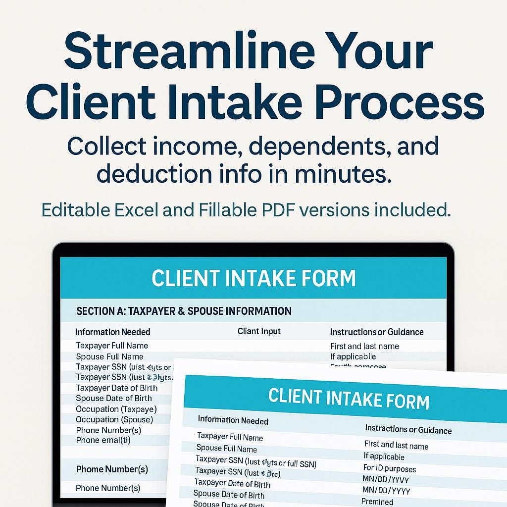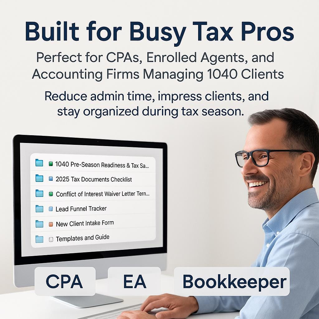 • Ideal for CPAs, EAs, bookkeepers, and independent tax preparers who need a consistent onboarding process.