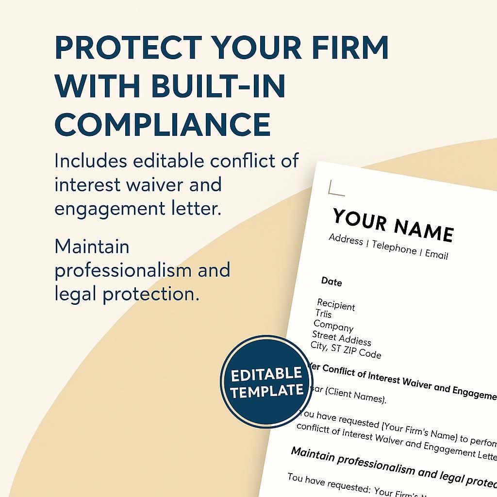 • Send the onboarding letter and conflict of interest waiver to confirm engagement terms and compliance.