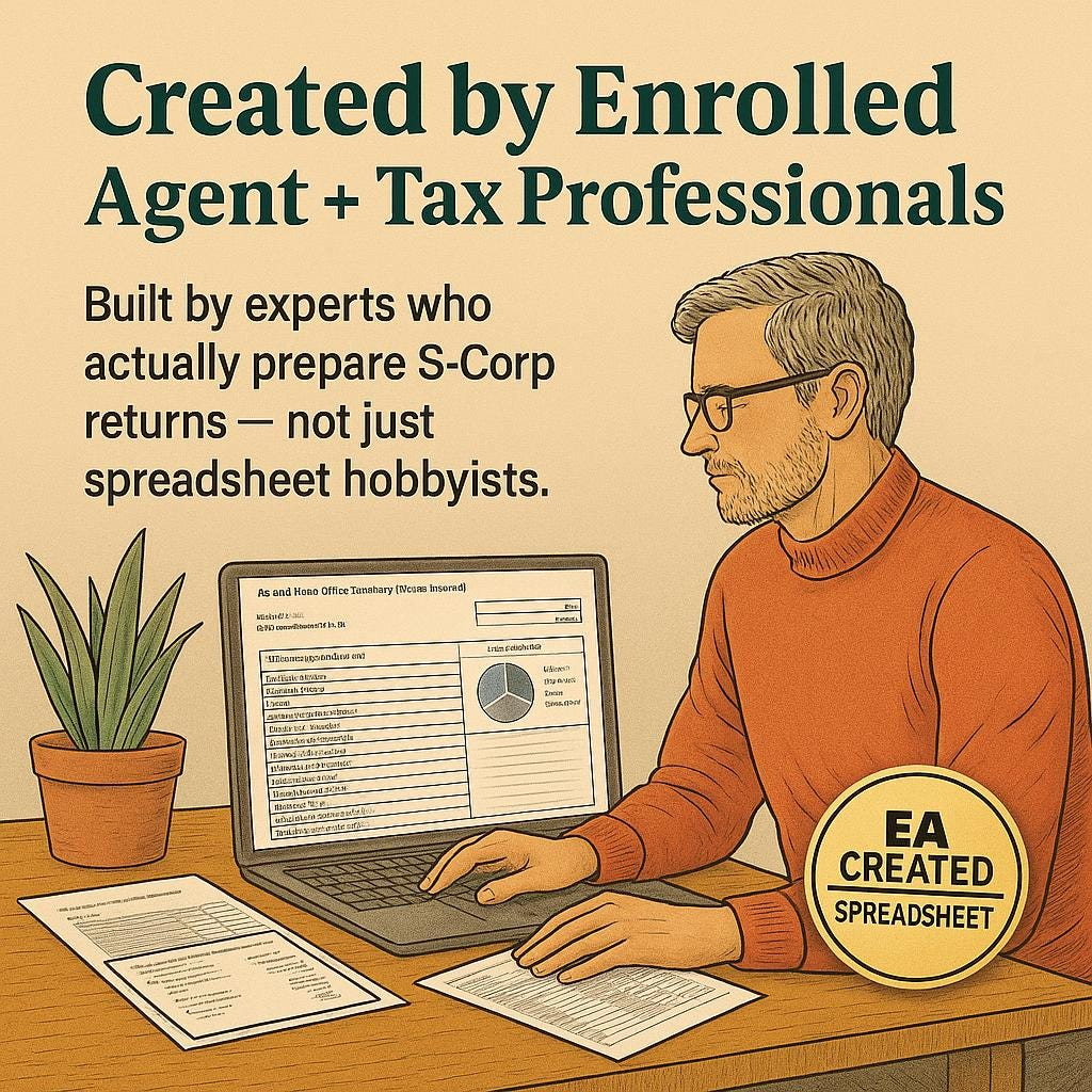 Delivered immediately in .xlsx format — ready to use for unlimited S-Corps or clients.